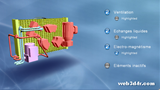 The X3D CAD Component nodes enable CAD assembly structuring of complex models. They extension nodes Part and Assembly are extensions of the X3D CADPart and CADAssembly nodes and have the ability to easily override appearance, visibility and transparency properties of assembly subparts.